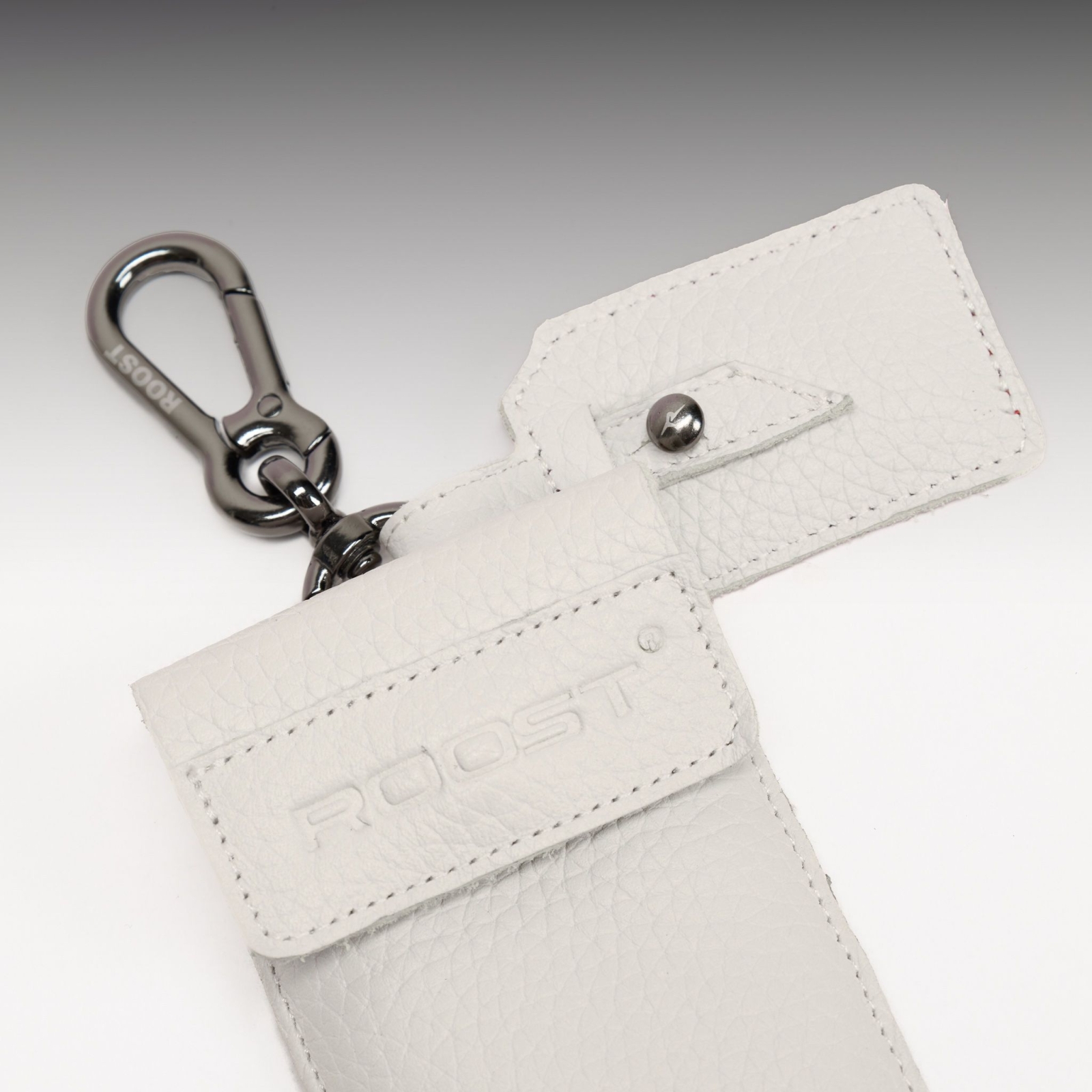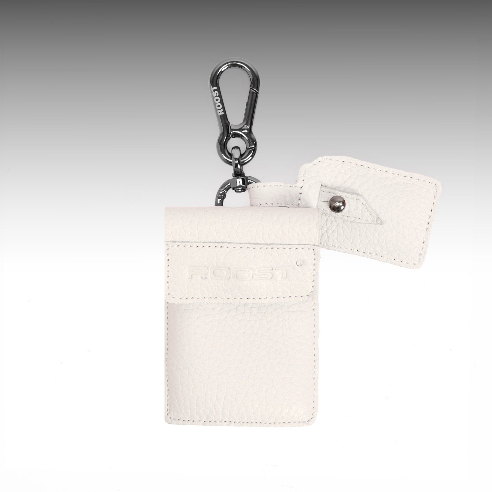 • The Card Holder Set includes: 1 leather holder pouch, 1 leather tag, and 1 Roost keychain